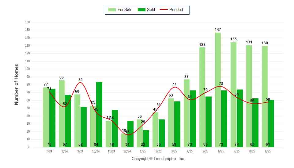 September property sales were 61, up 17.3% from 52 in September of 2024 and 3.2% lower than the 63 sales last month.